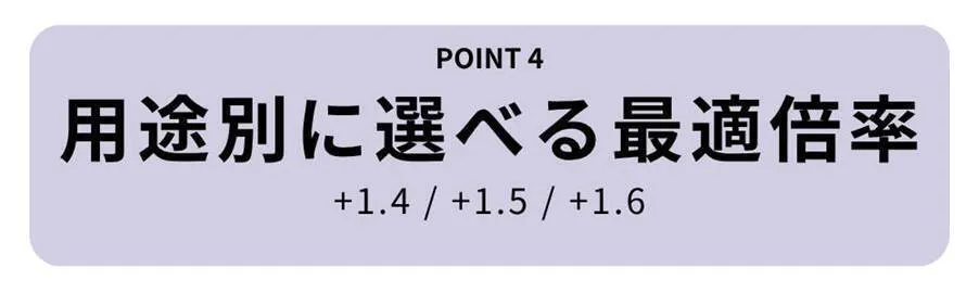 倍率:+1.4 / +1.5 / +1.6(選択可能)