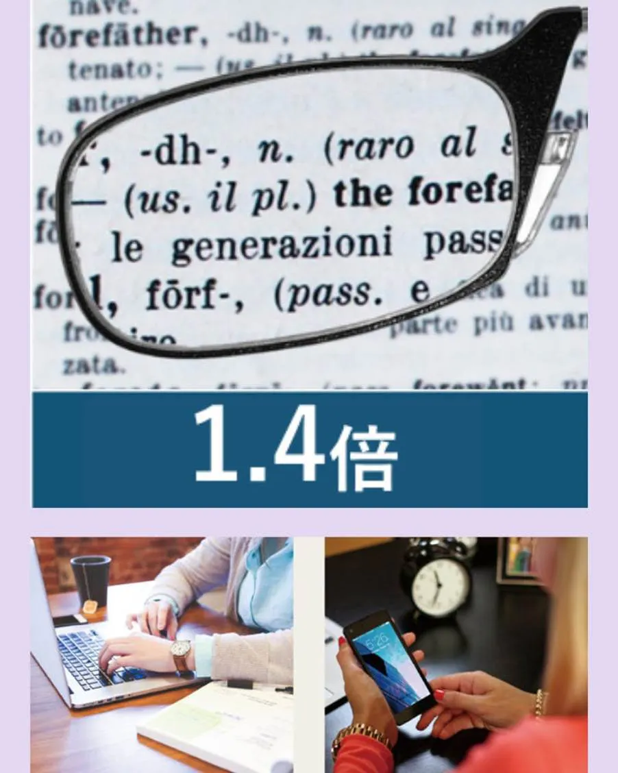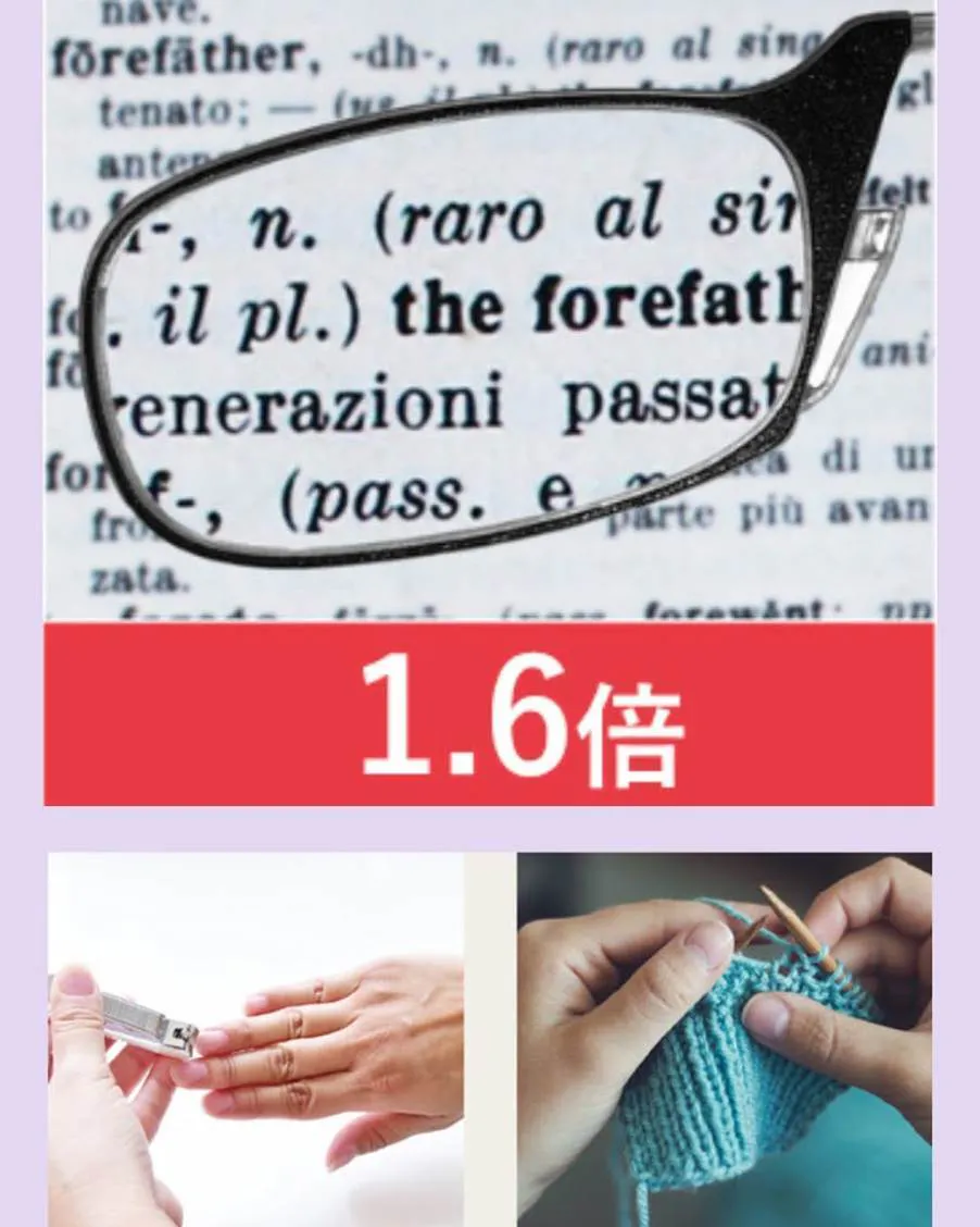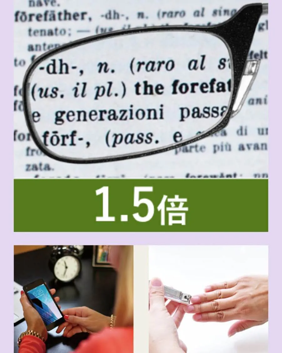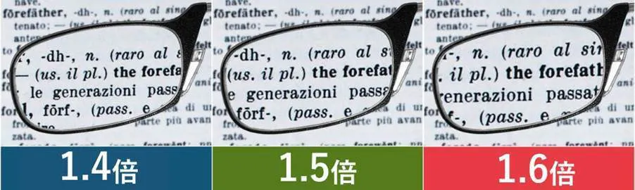 Thin Opticsは+1.4/+1.5/+1.6の3つの倍率を用意。シーンに合わせて最適な倍率を選べば、細かい文字を無理なく読みやすくします。用途別に使い分けることで「読む」のストレスをぐっと減らします。