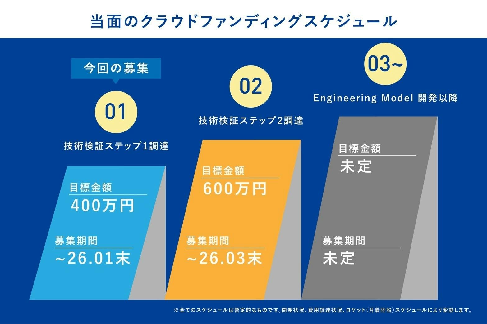 上記スケジュールが進むにつれ、段階的に費用が必要となってきます。第2弾、3弾とあらためて皆様のご支援を賜ることで成功への道がどんどん開けていきます。
