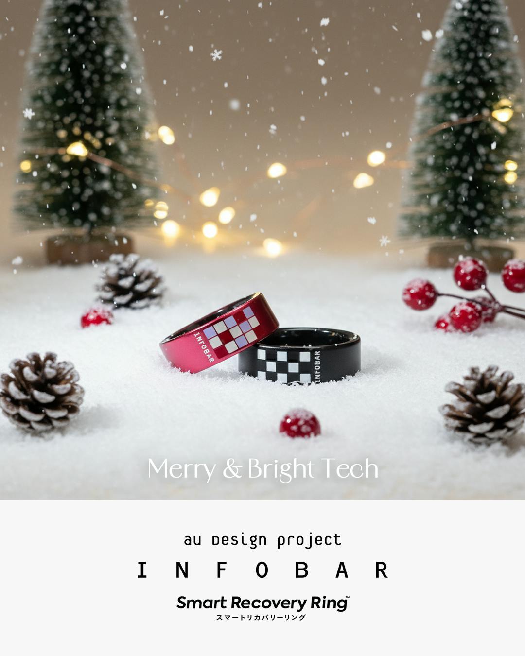 ❅ ꊛ ❅ ★ Merry & Bright Tech ★ ❅ ꊛ ❅こんにちは。au Design projectチームです。もうすぐクリスマスということで、キービジュアルをGoogleの最新画像生成AIモデル「Nano Banana Pro」を使ってクリスマス仕様にしてみました。スマートリングも生成AIもすごいテクノロジーですよね!ところでリングのサイズですが、サイズがご不安な場合は、auショップにSmart Recovery Ringのリングサイザー付き展示台を設置しておりますので、お試しいただけますと幸いです。店舗によっては設置していない場合もございますのでご了承ください。クラウドファンディングは 2026年1月31日(土)23:59まで。支援総額は3500万円を超えました。たくさんのご支援本当にありがとうございます。検討中の皆さま、2個セットが15%OFFと大変お得です。家族、恋人、ご友人とご一緒にいかがですか?一人で2色揃えるのも素敵ですよね。引き続き応援よろしくお願いいたします。au Design projectチームより