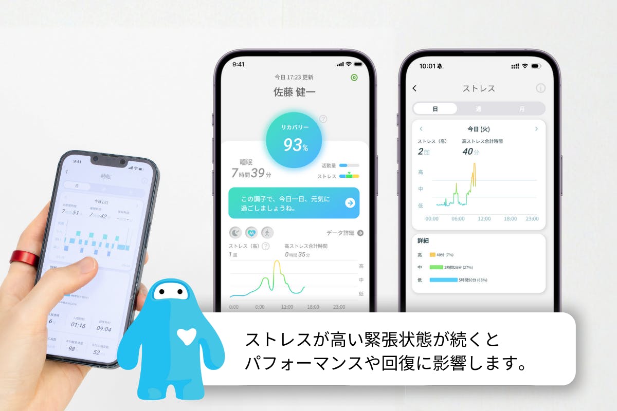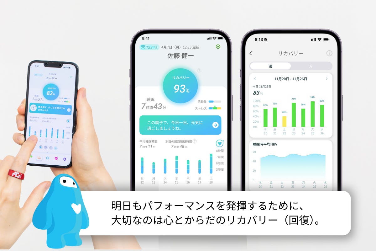 つけるだけで毎日の心身状態を自動記録。睡眠、ストレス、身体活動を測定し、回復度をリカバリースコアで可視化。