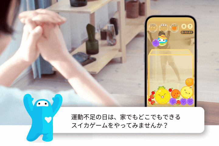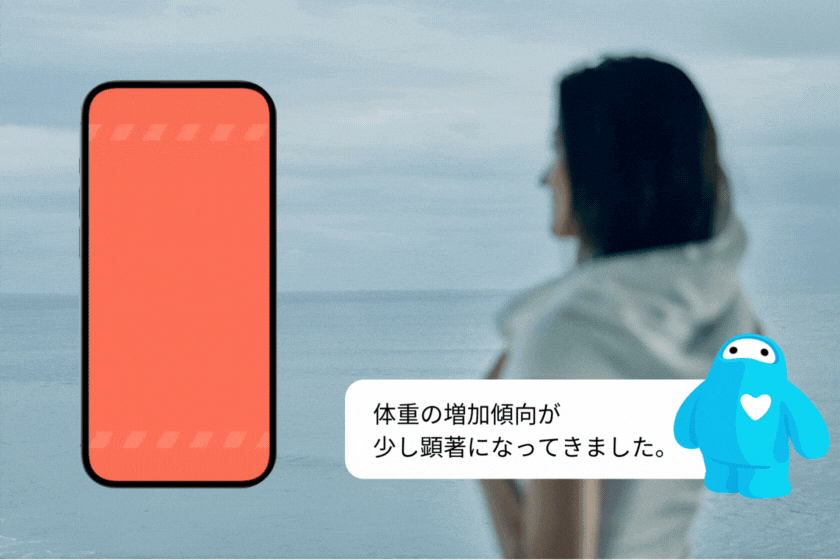 パーソナルヘルスケアAIウェリーが、変化を見守り、気づきをくれる。さらに、体重増加の予兆をキャッチしたら、先回りしてフォローします。たとえば、スマホのカメラでパシャッと撮るだけ、かんたん「AI食事管理」、いつでもどこでも楽しく運動「スイカゲーム -エクササイズ版」も活用し、ラクで楽しく、体重維持を実践。