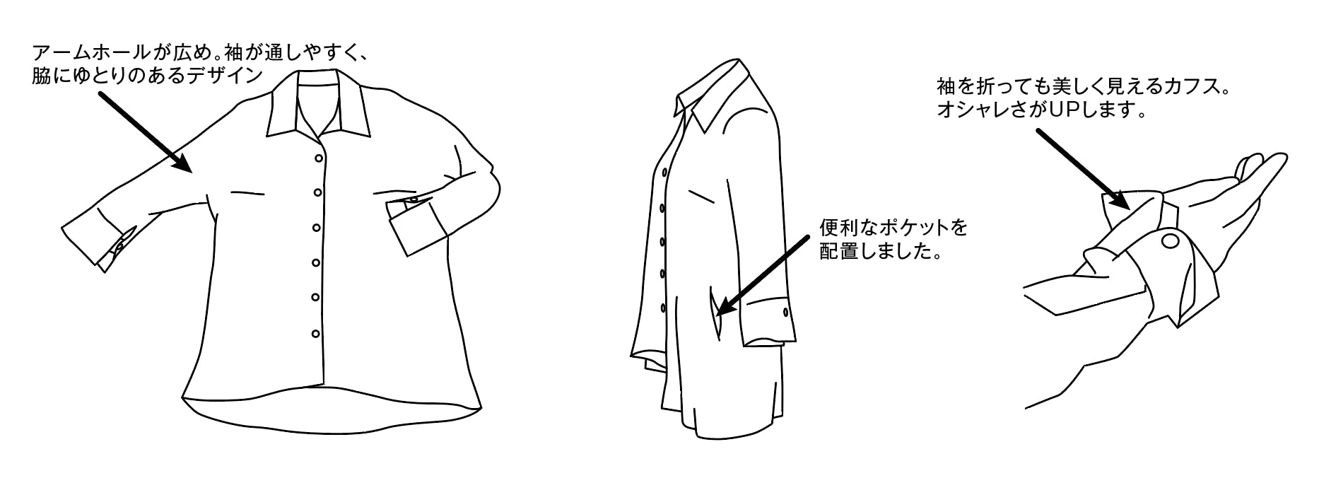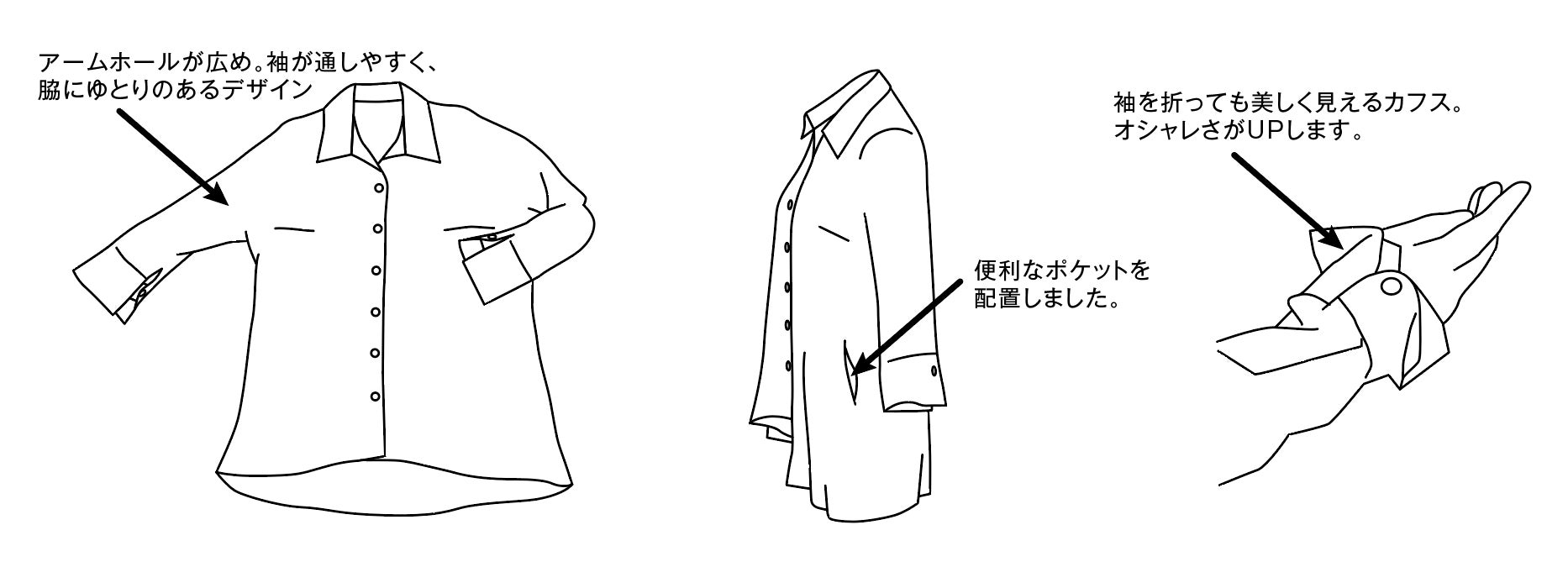 ・袖丈は7~8分袖。手元がもたつかずスッキリします。