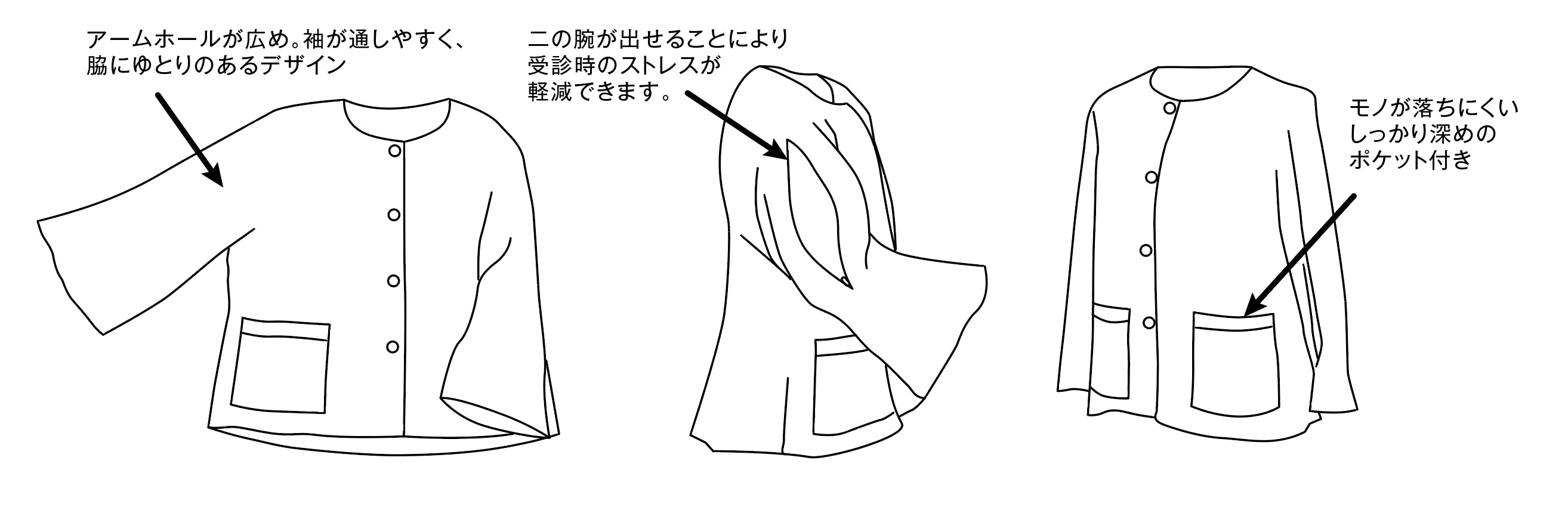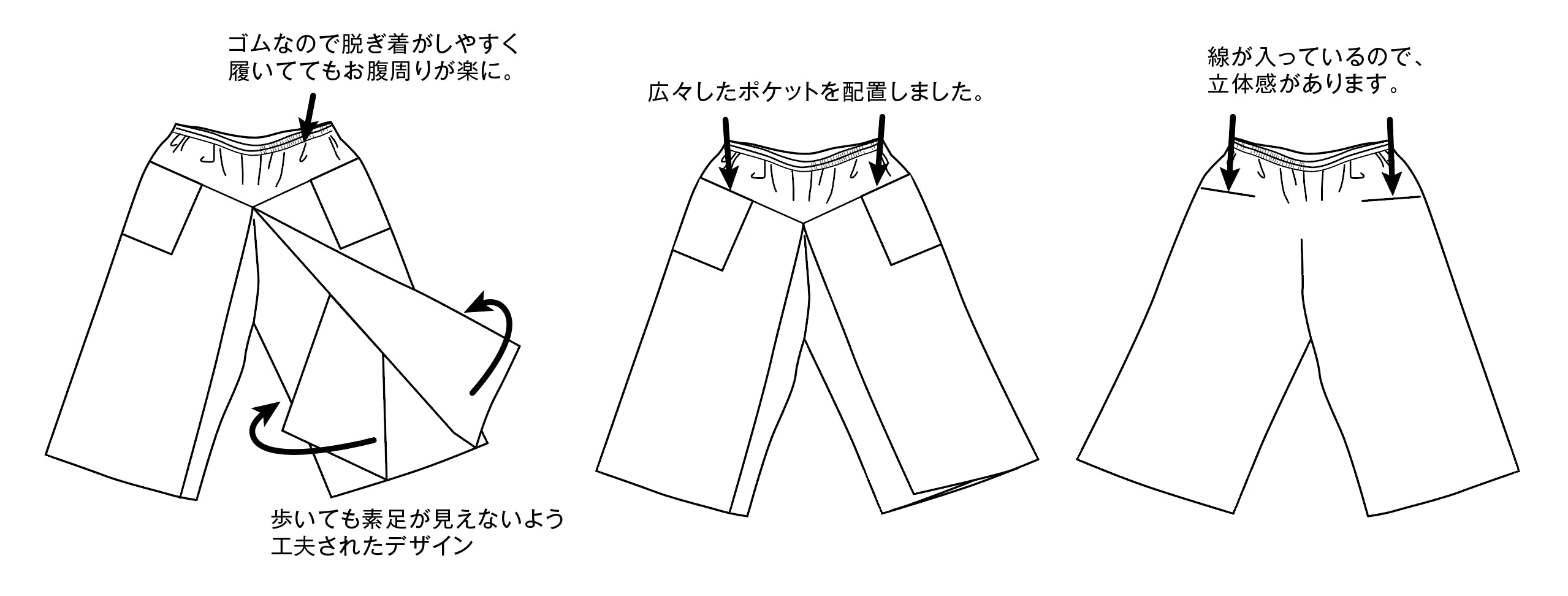 ・病院受診の際、着用したまま足を出せる設計。