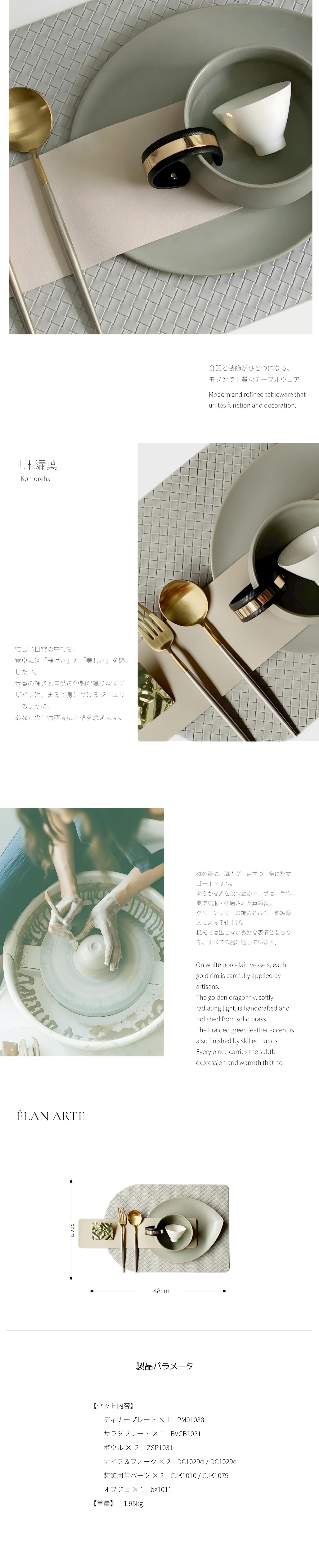 本商品は、上質な素材と洗練されたデザインを融合させたテーブルウェアセットです。日常使いはもちろん、特別な日の食卓にも華やかさを添えるアイテムとしてご活用いただけます。