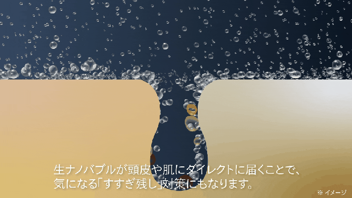 1.ナノバブルが毛穴の奥まで入り込み(※角質層まで)、汚れをスッキリ!