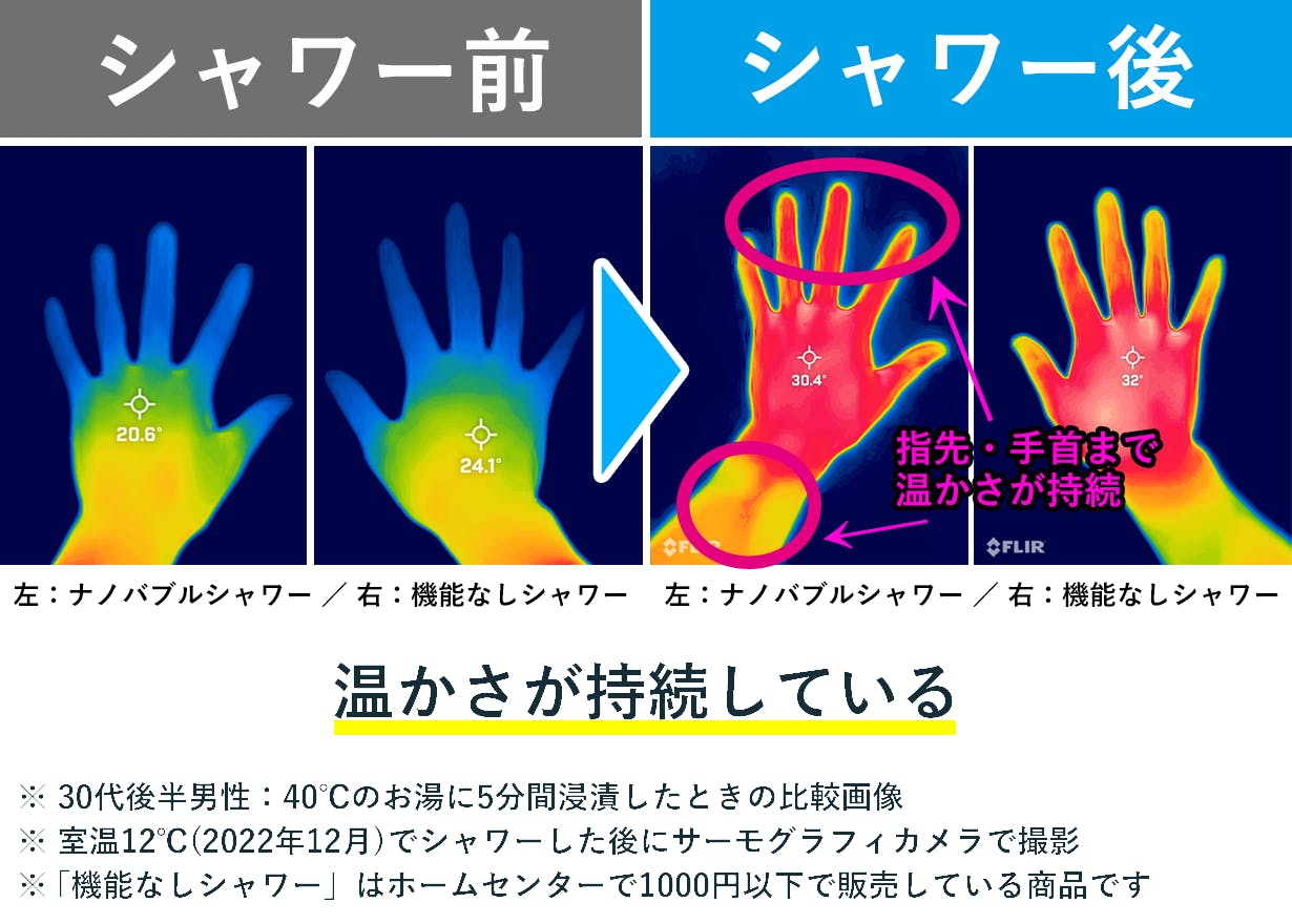 3.ナノバブルで「保温(温浴)効果」に期待!