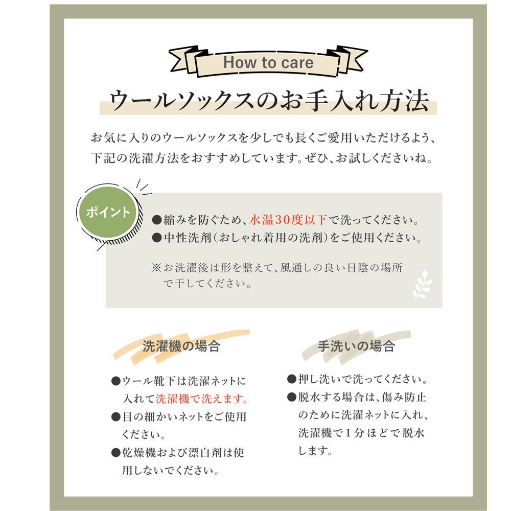 せっかくのウール靴下を、少しでも長くご愛用いただくため