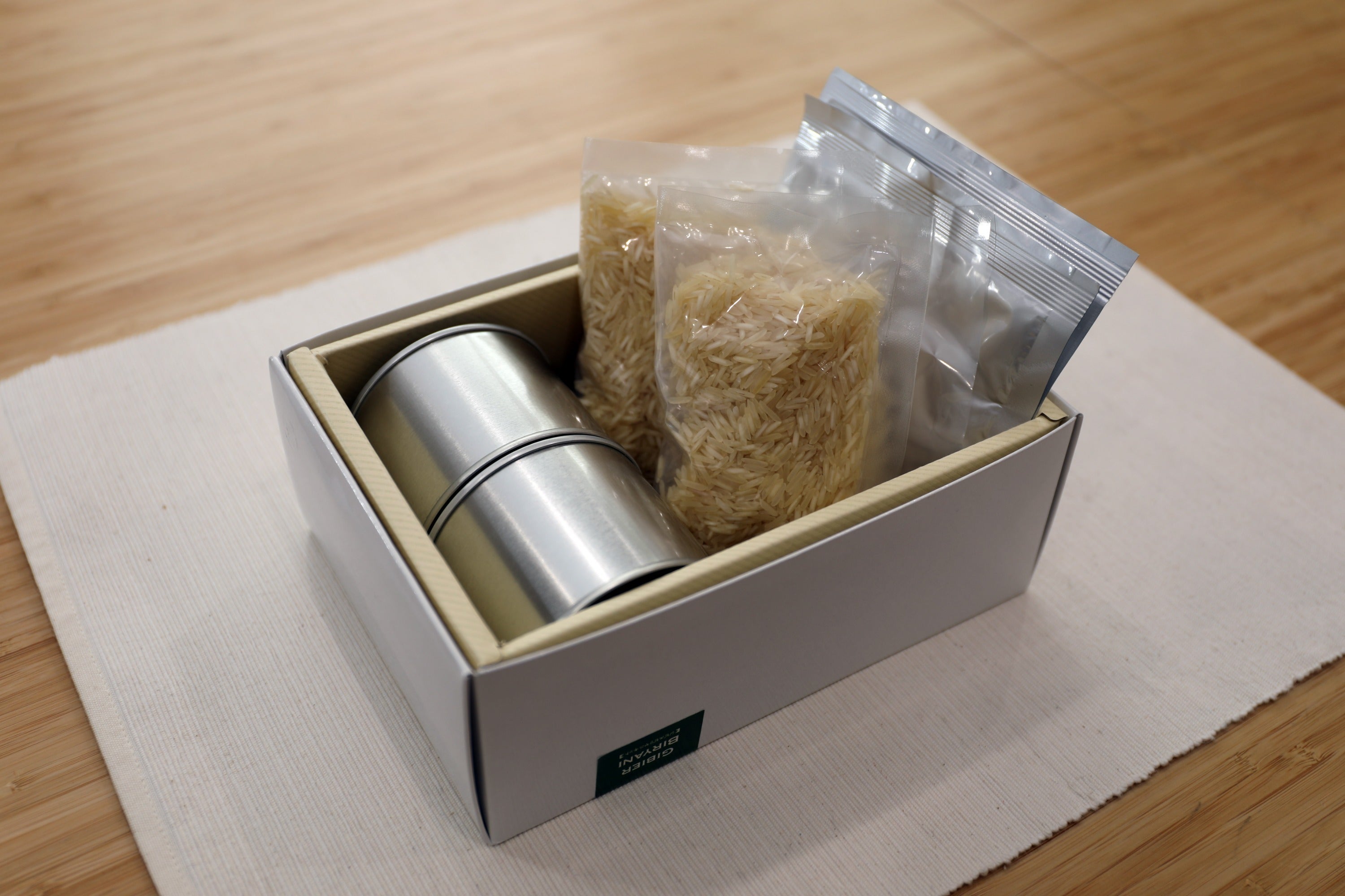 ビリヤニに欠かせないのは、なんといってもバスマティライス。使いやすい量として、1合分の小分けにしました。
