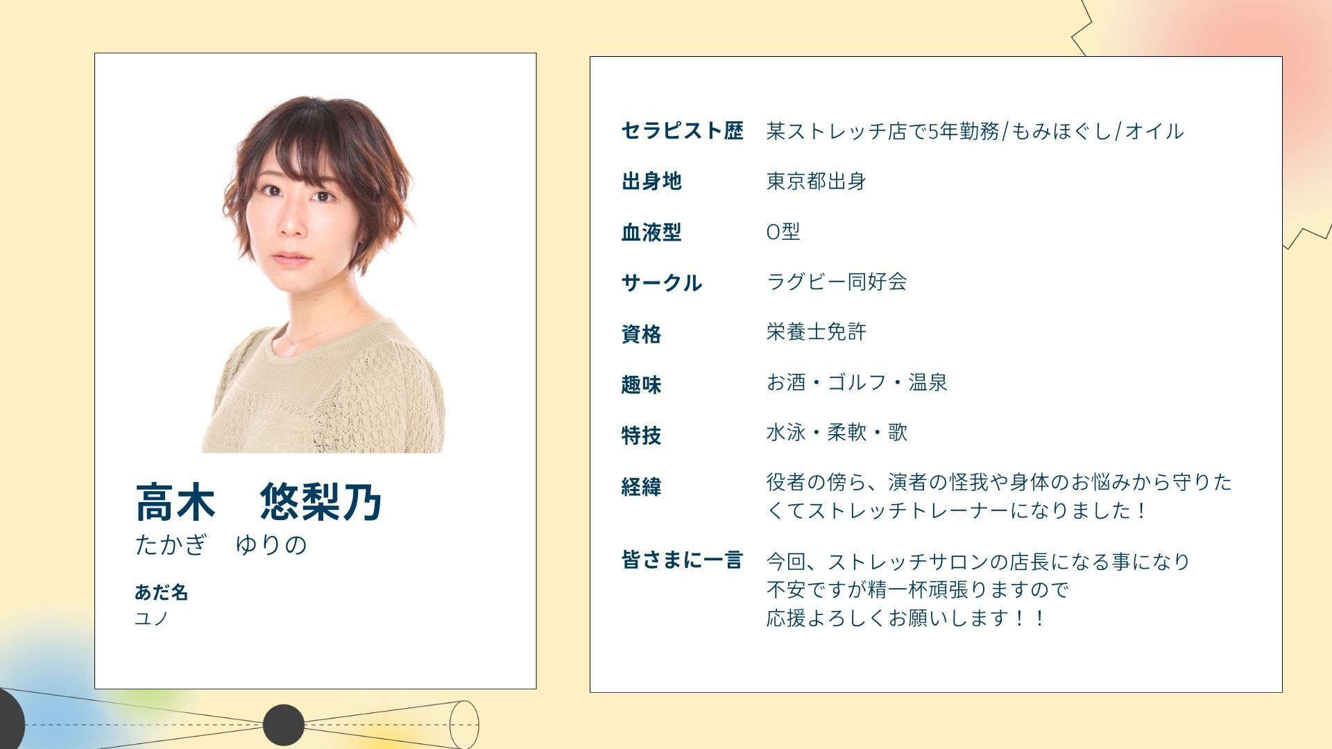 現在、私は声優として働く側、ホットストレッチ1号店である池袋店にて勤務しております。