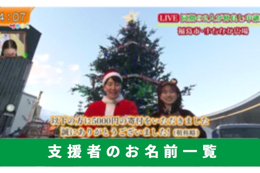 画像はイメージです福島テレビの番組「サタふく」内で、支援者様のお名前(ニックネーム)スーパーをご紹介します。お名前が掲載されるのは12月20日(土)放送回です。