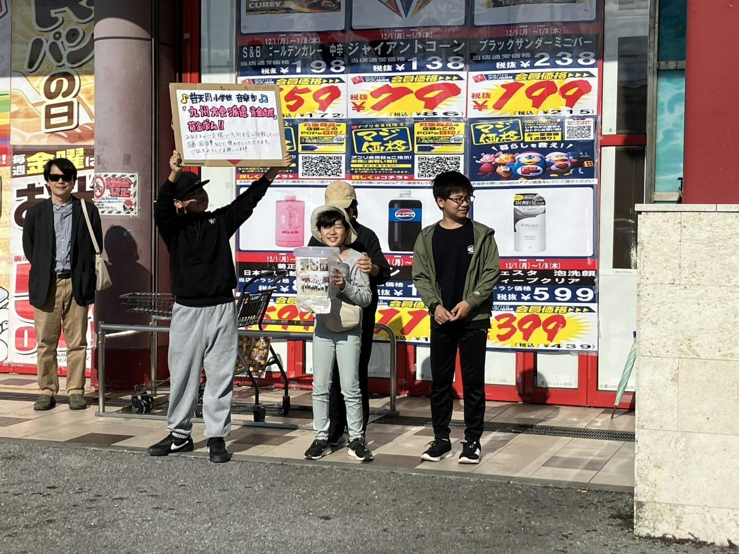 2025/12/22 21:2012/13サンシー宜野湾店にて募金活動を行いました。来店された方はもちろん、隣のスーパーからわざわざ募金いただいた皆さま、本当にありがとうございます。そして、募金と同時に温かいご声援もありがとうございました。子どもたちも募金活動を通して、地域の方に支えられている実感と人の優しさを感じています。これからも児童・保護者一同、皆さまのご支援・ご声援を励みに頑張ります! もっと見る