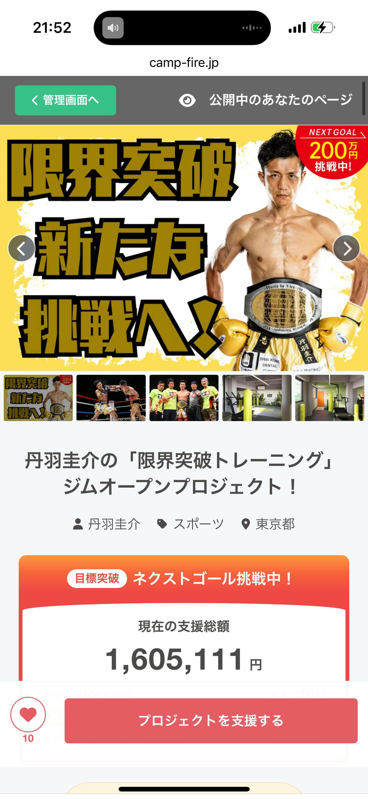 2025/12/21 22:46限界突破ジムの #クラウドファンディング 、31日まで、残り10日となりました!おかげさまで100%通過して、ネクストゴール200万円目指していくので、支援協力いただける方はチカラ貸してやってください!https://camp-fire.jp/projects/897224/view?list=search_result_projects_popular今月はジムのプレオープンということで、人気メニュー、0期生の #体験トレーニング をさせていただいてます。僕がこのジムで直接見れるであろう人数が50名限定となりますので、【カラダが変われば人生が変わる】【カラダが良くなれば即効でマインドが良くなる】【カラダが整えばメンタルが整う】体験を受けてみてください。キックのミット打ちでストレス発散はもちろんのこと、自重筋トレで全身刺激っクス、ただ鍛えるだけでなく、コアストレッチと整体マッサージの組み合わせで絶好調コンディションを獲得してスッキリして理想の明日へ向かってください。体験トレーニング申込お待ちしてます!#駒沢ジム #KSKGYM #パーソナルトレーニング #キックボクシングトレーニング #kickboxing #挑戦する人を応援 #丹羽圭介 #限界突破トレーニング #限界突破ジム #桜新町 #世田谷ジム #駒沢パーソナル #40代トレーニング #50代トレーニング #60代トレーニング #経営者トレーニング #疲労回復 #ストレス解消 #心身を整える もっと見る