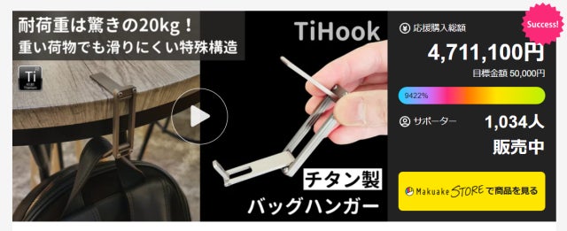 ・チタン製カラビナ型バッグハンガー「TiHook2」をより多くの方に知っていただくためのプロモーション費用などに使わせていただきます。