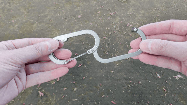 TiHook2はカラビナ型のバッグハンガーで、普段はカラビナとしても使えます。