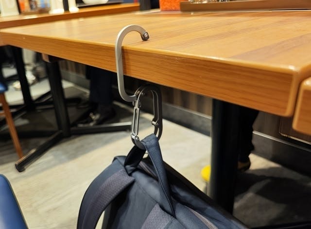 必要な時にサッと「TiHook2」を取り出せて、テーブルや椅子にかけられます。