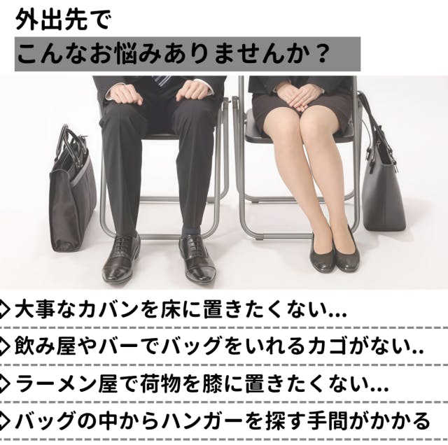 特に雨の日は、水滴や泥で床が濡れていて、バッグをどこに置くか悩んだことはありませんか?