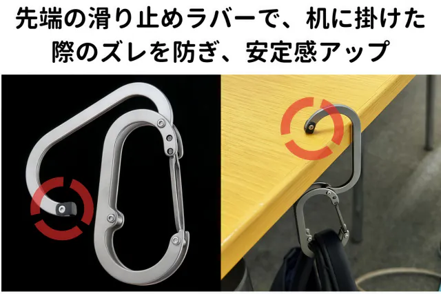 出先で荷物を簡単に机に掛けられ、長く使い続けられるチタン素材を使用し、普段の生活で大活躍すること間違いなし!