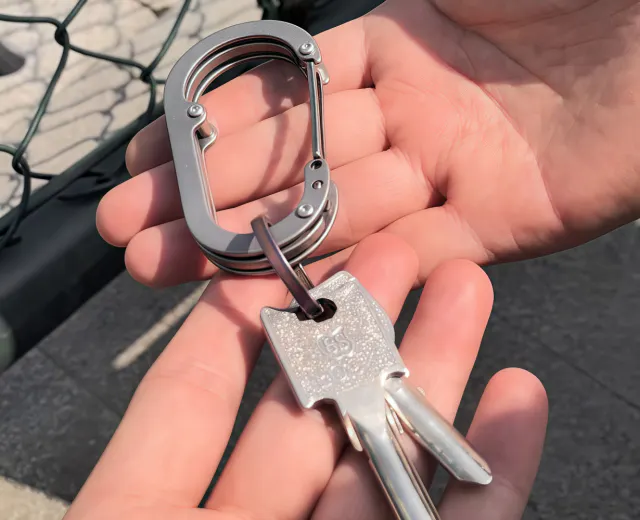 TiHook2はカラビナ型のバッグハンガーで、普段はカラビナとしても使えます。