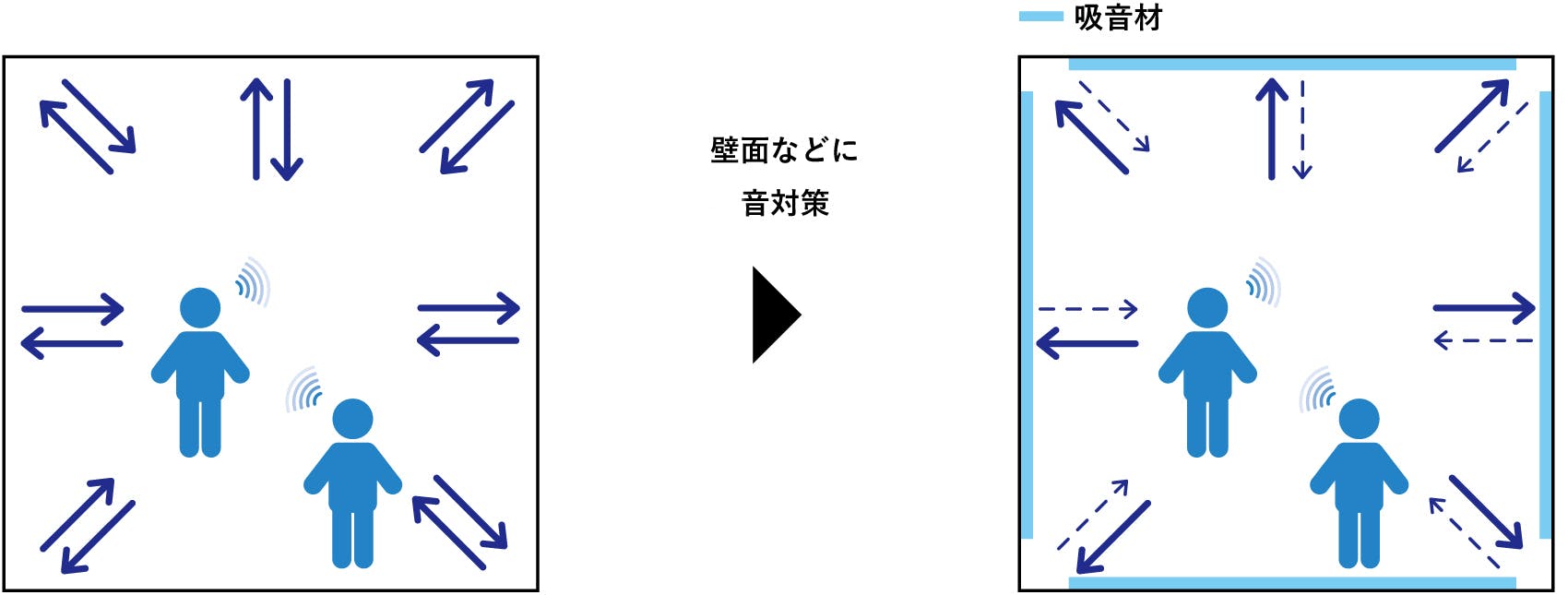 「吸音」とは、室内が響きすぎる状態を改善し、音をクリアな状態にすることです。