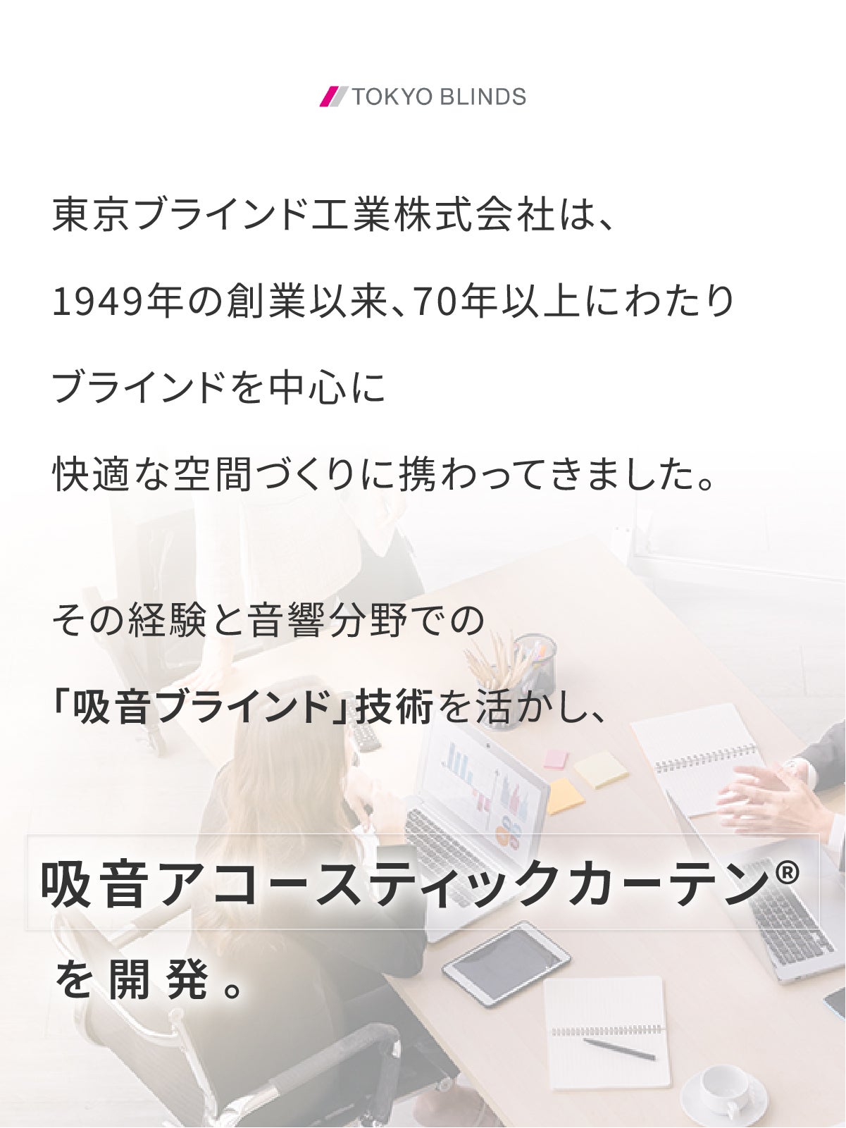 吸音ブラインド、吸音パネル、そして吸音アコースティックカーテン®と、建築音響の知見を生かした製品を展開してきました。