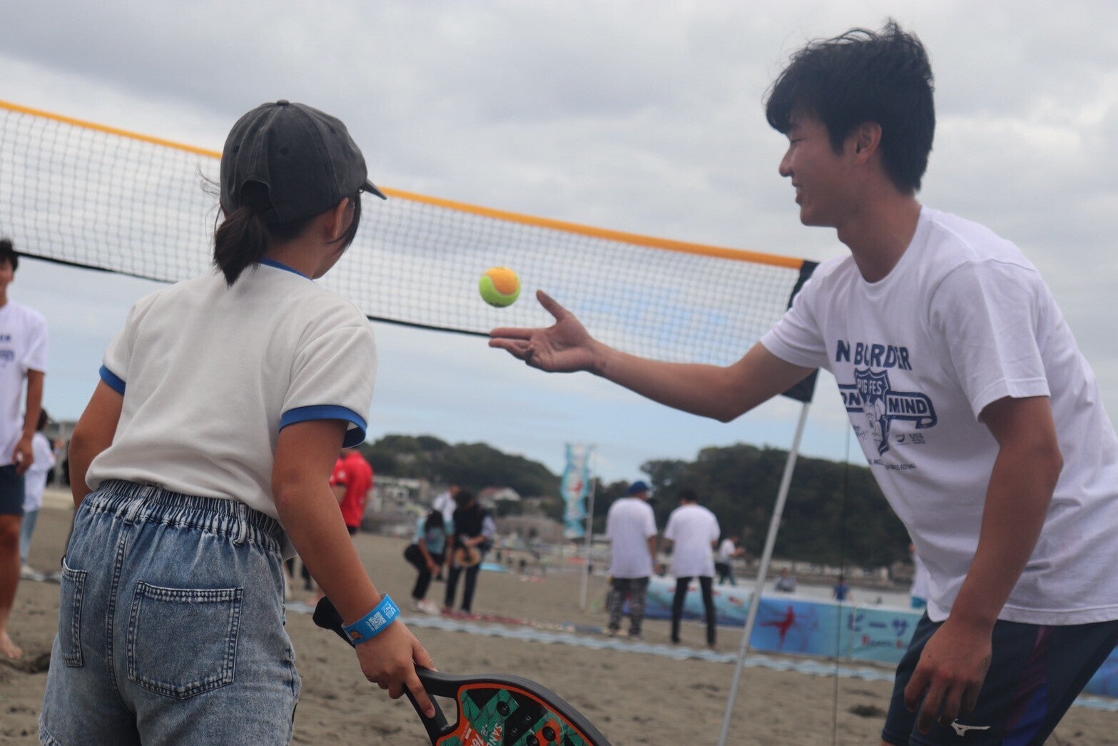 本イベントは、横浜ゆるスポーツ協会の「スポーツ弱者を、世界からなくす」という取り組みの下、実施されています。私たち庭球部は、参加者の皆様とテニピンに挑戦しました。テニピンとは、小さな軽いラケットでスポンジボールを打ち合うスポーツで、初心者の方も、小さなお子様も、どなたでもテニスを楽しむことができます。テニピンを通じてテニスの魅力を多くの方にお伝えし、誰もがスポーツを楽しめる社会の実現を目指しています。