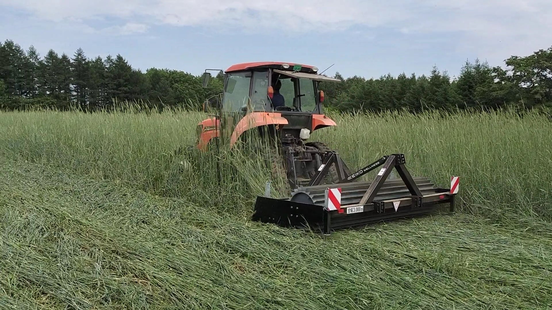 試験の様子。ライ麦を倒伏させています。