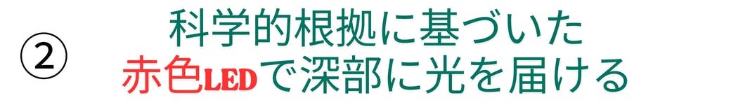 これらの効果により、赤色LEDは育毛や頭皮ケアにおいて注目されています。※赤色LEDは、波長が630〜655ナノメートルの赤色の光を発するLED(発光ダイオード)のことです。この範囲の波長は人の目に見える可視光線の中でも深く皮膚に届きやすいという特性があります。