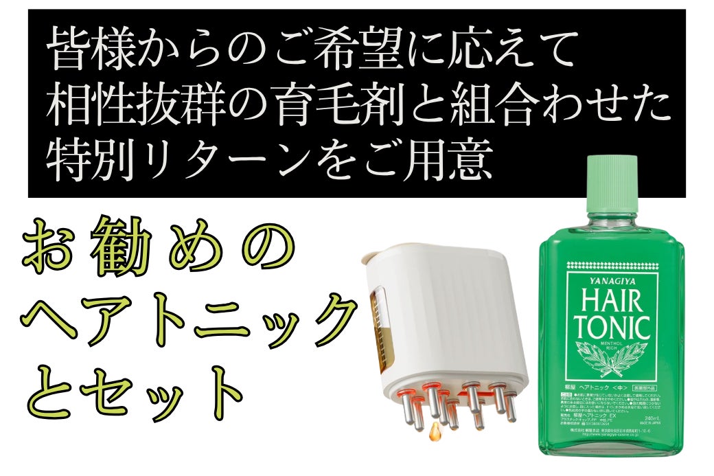 「ヘアオイル、トニックを用意するのが面倒」という方の為に、本体に加えて、頭皮ケアに最適な「柳屋ヘアトニックとセット」をご用意しました。