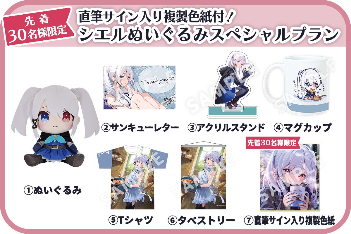 【先着30名様限定】「三嶋くろね」直筆サイン入り複製色紙付き、ぬいぐるみとグッズ一式のプランです♪