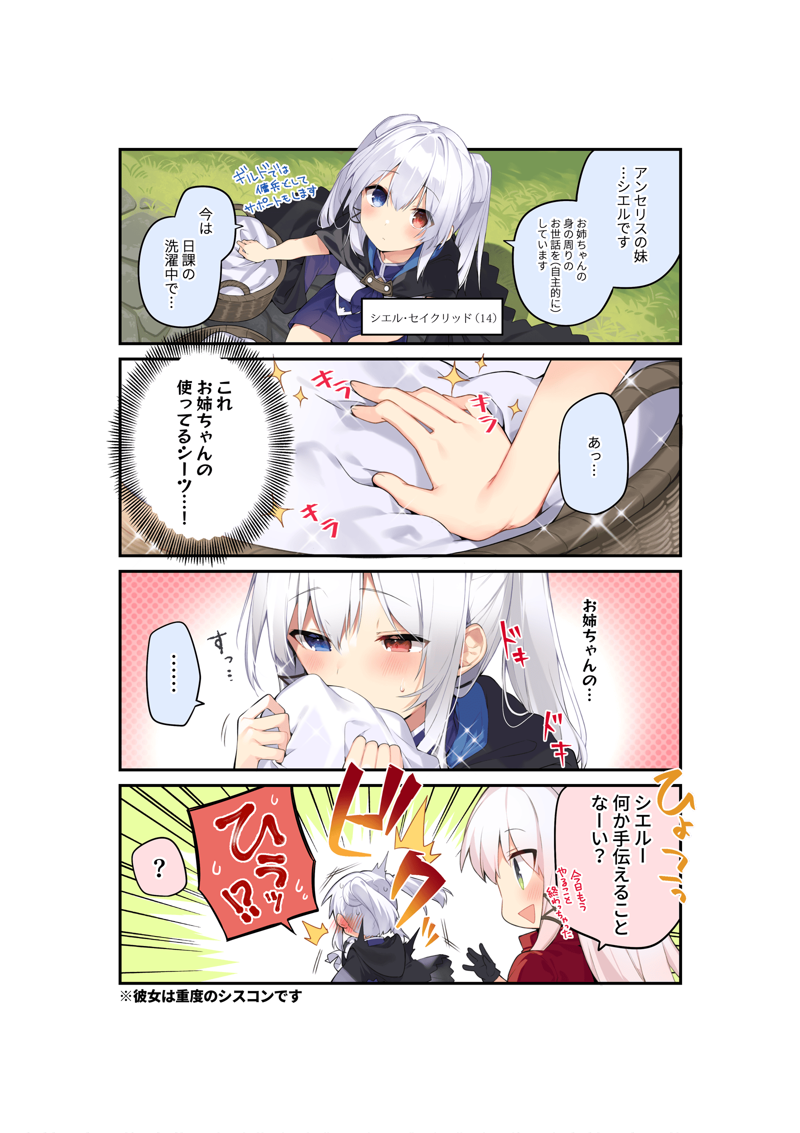 正式名はシエル・セイクリッド。同じく看板娘のアンセルの妹であり、お姉ちゃんが大好き♪