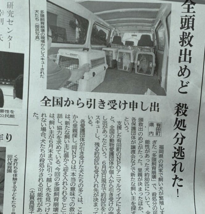 当時、ニーナがいた多頭飼育崩壊現場について報道された新聞記事