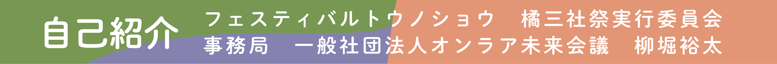 はじめまして!私は、千葉県香取郡東庄町の未来を本気で考える住民有志による「橘三社祭実行委員会」で事務局を担当しています、一般社団法人オンラア未来会議 代表理事 柳堀(やなぎほり)裕太です。