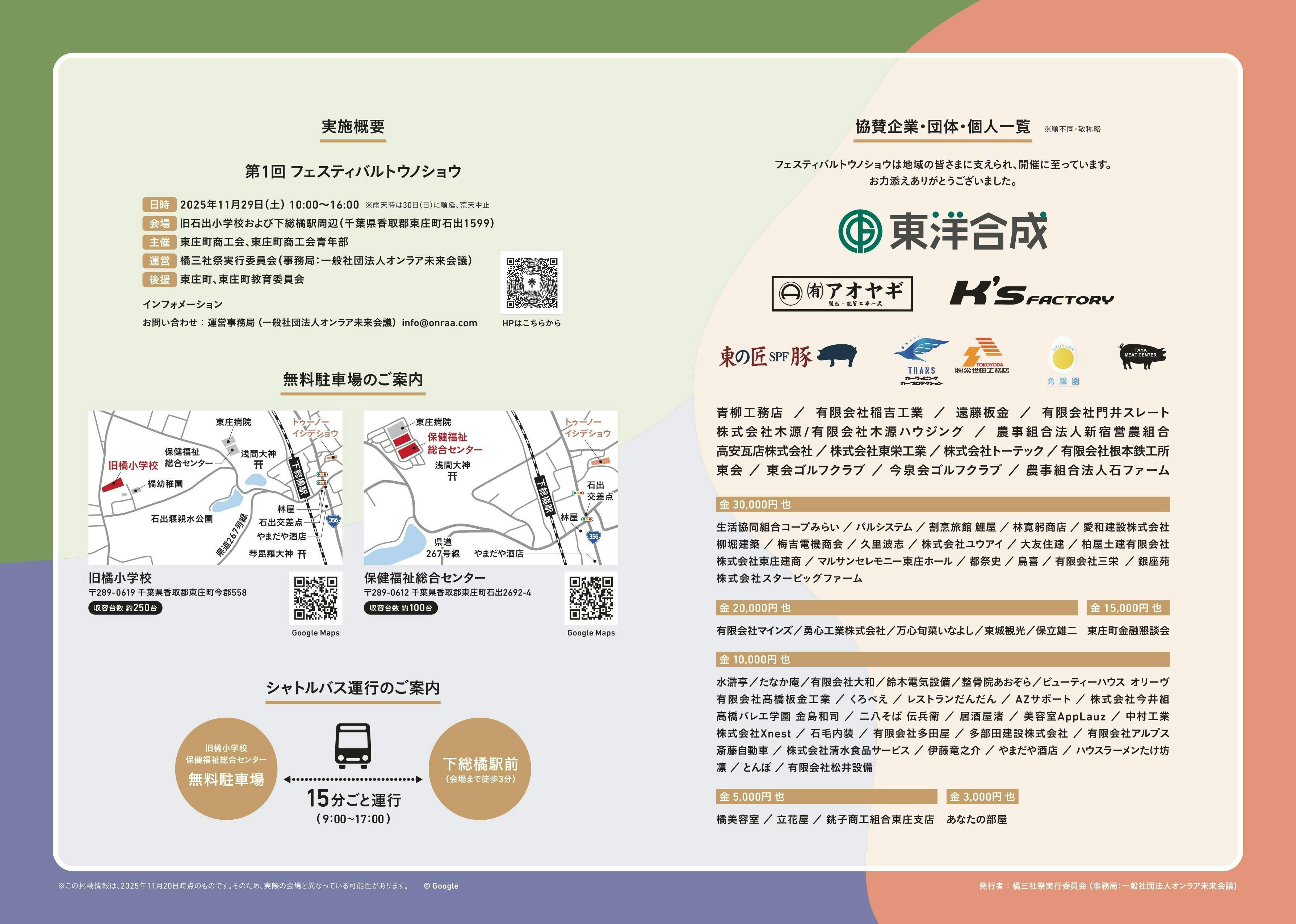 ※ 東庄町および商工会から、合計150万円の補助金が当イベントにおいて採択されました。
