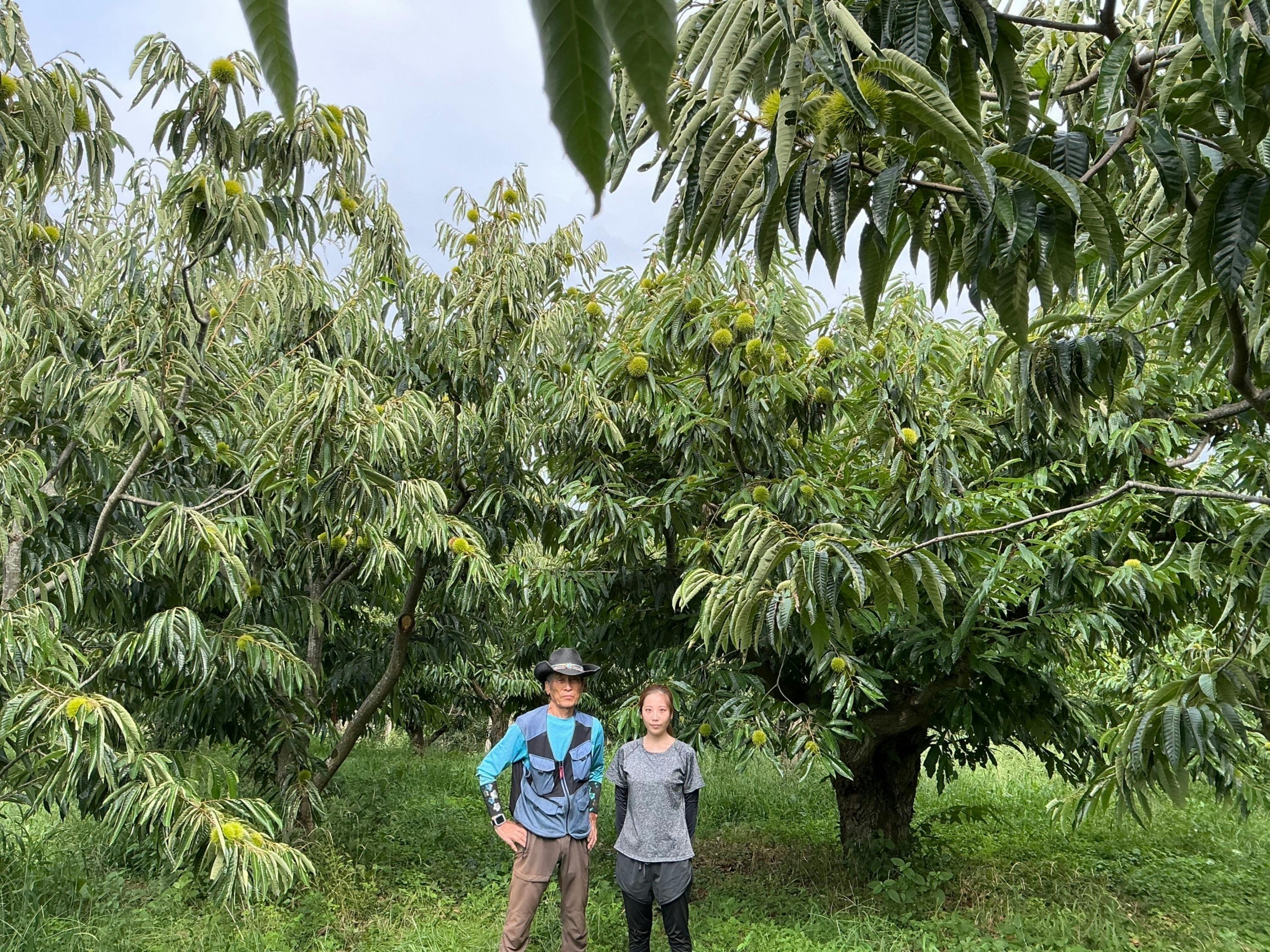 京丹波町の、自然豊かな里山にある当農園は、寒暖差の大きな気候と、清らかな水、そして肥沃な土壌を活かし、黒豆や枝豆、そして京都府のブランド産である丹波くりといった、地域を代表する農産物を育ててきた、まさに地域密着型の農園です。その歴史は三代にわたり受け継がれております。祖父が始め、父がくりの栽培本数を増やし、そして現在は私が後を継ぐべく、日々農作業と経験を基に栽培技術の向上に励んでいます。私は、栽培の過程でどうしても出てしまう「生くりとしては流通できないくり」を見て、たいへん“もったいない”と感じていました。そこで趣味のお菓子づくりの発想を活かし、規格外のくりを加工に回すことで、廃棄をなくし、新しい商品価値を生み出すため、この度、6次産業化に向けて新たにカフェをオープンいたします。