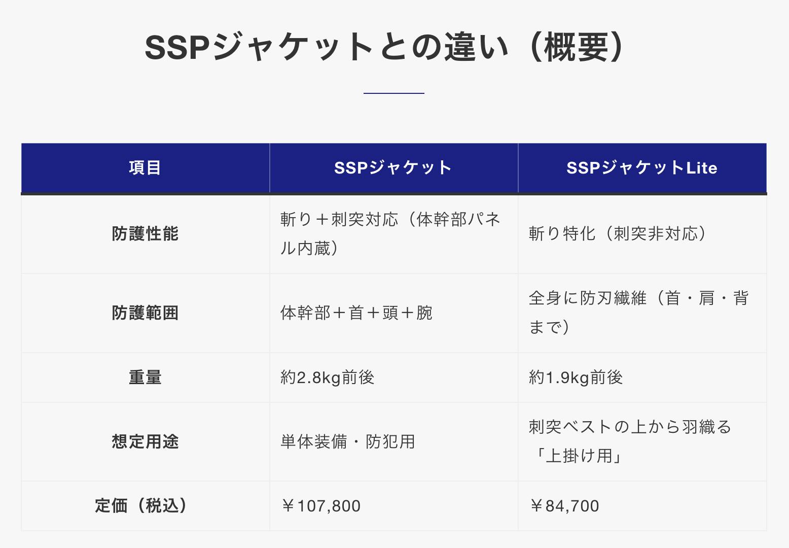 体幹部の刺突防止をメインに開発してきた従来のSSPシリーズから新たに派生。