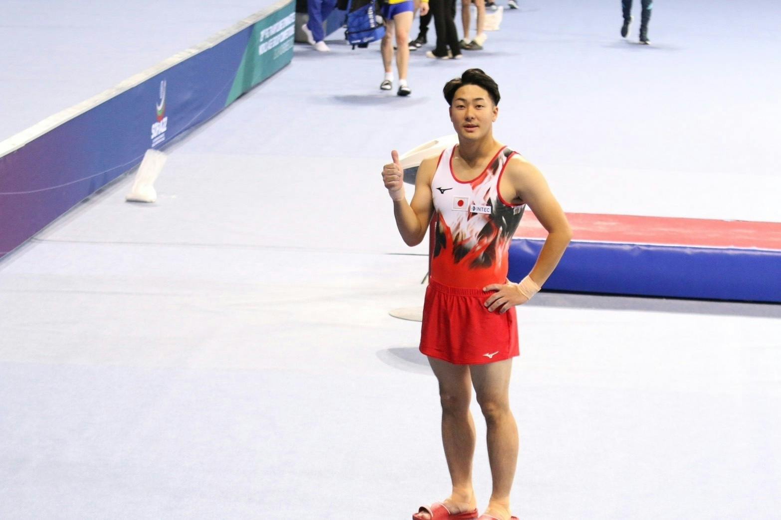 体操とタンブリングの二刀流で取り組み、社会人になってからもアキレス腱断裂など大怪我を経験。