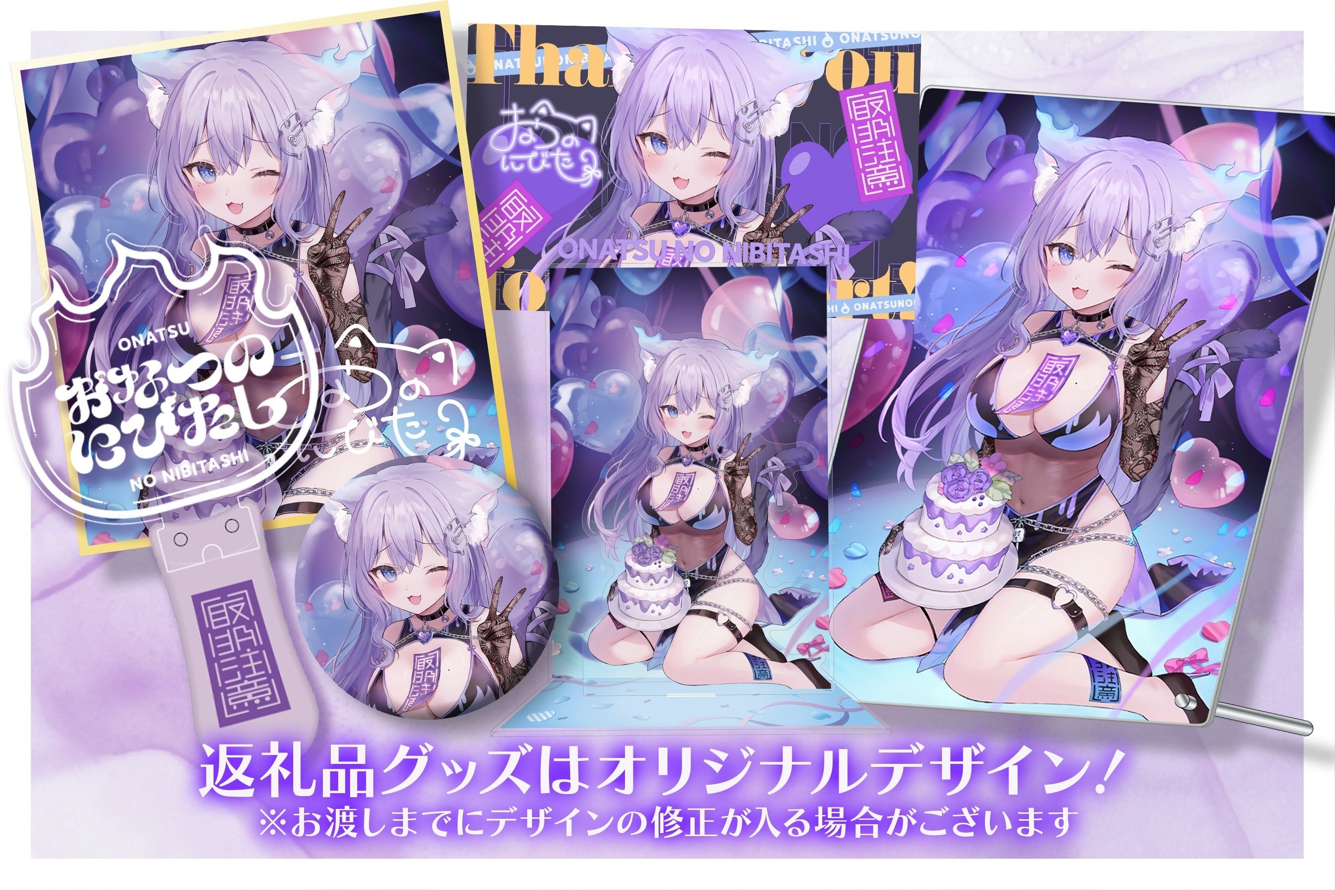 おなつのにびたし3DCF支援デジタル証明カード/支援者限定描き下ろしイラストヘッダー/支援者限定CF活動報告/お礼メッセージ動画(2Dモデルの姿)/お礼メッセージ動画(3Dモデルの姿)/あなたのお名前呼び(Live2Dの姿)お礼メッセージ動画/おなつのにびたしオリジナルパソコン用システムボイス/支援者限定撮り下ろしシチュエーションボイス/支援者限定描き下ろしイラストデジタルサイン入り待ち受け/支援者限定描きおろしイラスト缶バッジ/支援者限定描きおろしイラストポストカード/支援者限定アクリルスタンド(3Dモデル)/支援者限定オリジナルデザインペンライト/支援者限定CF返礼品描きおろしイラスト 立体ジオラマアクリルスタンド