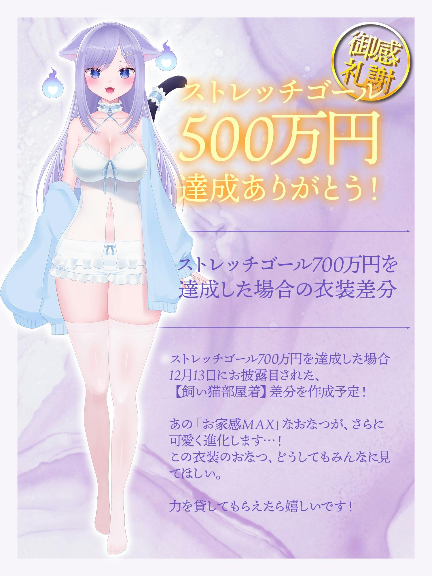 現在ストレッチゴール700万円【衣装差分追加】に向けて挑戦中♪