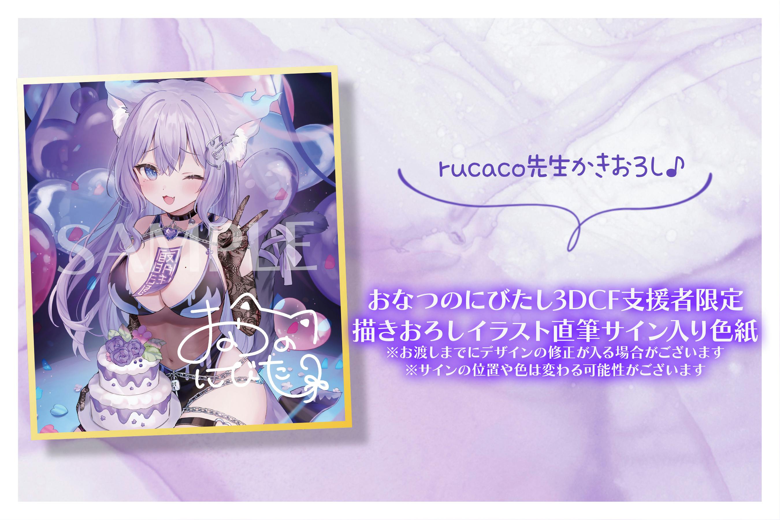 rukaco先生描き下ろしイラストをプリントした色紙に