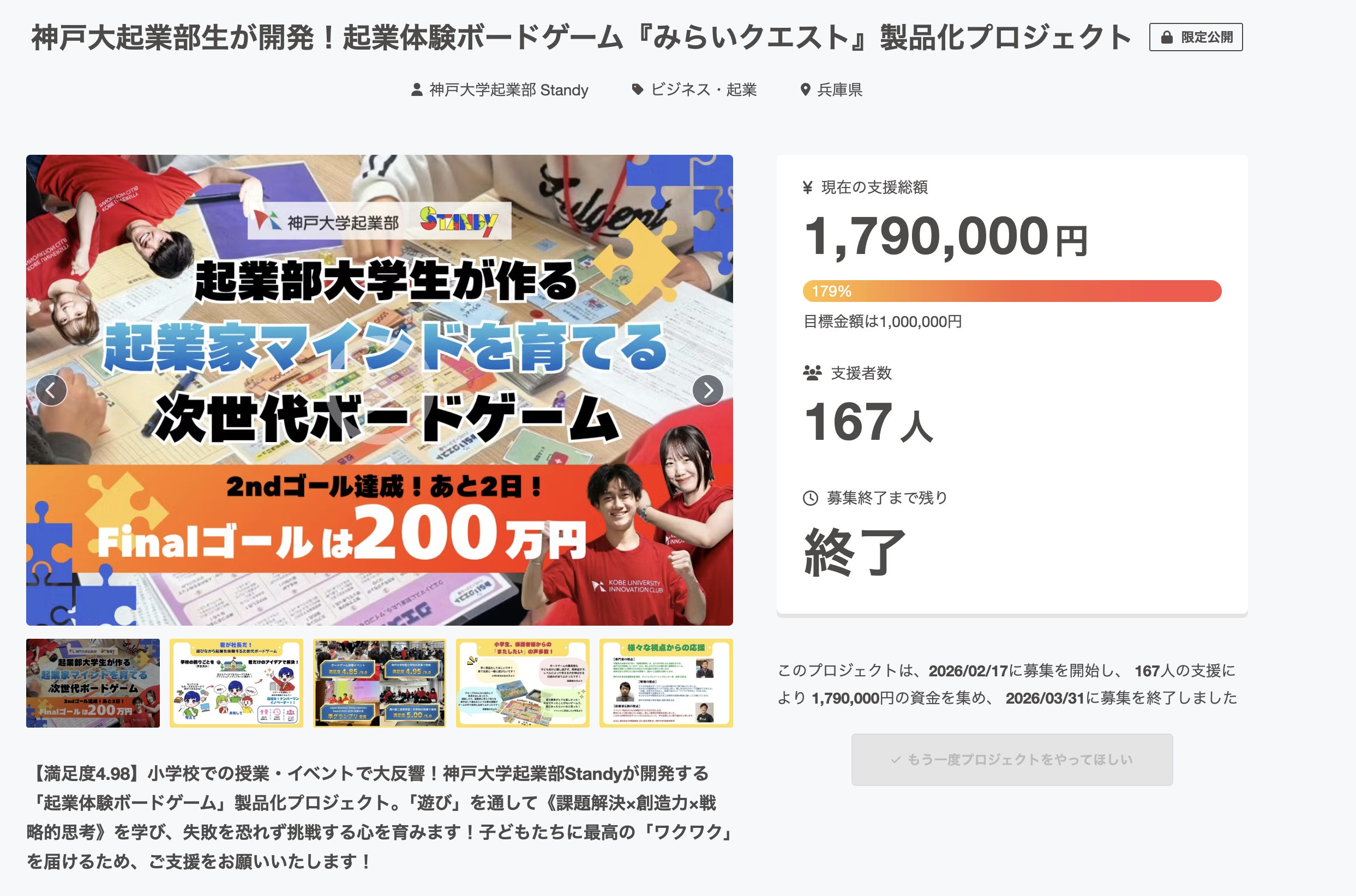 3/31(火)23:59をもちまして、私たちのクラウドファンディングが無事に公開終了を迎えました。