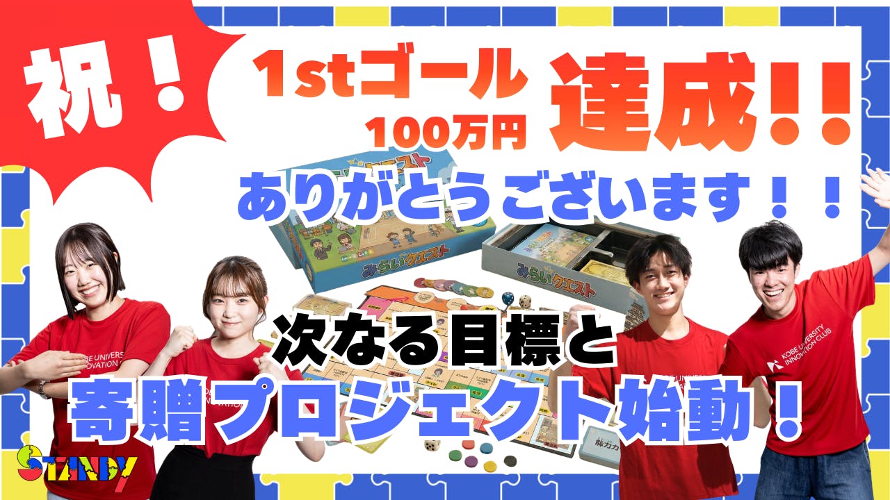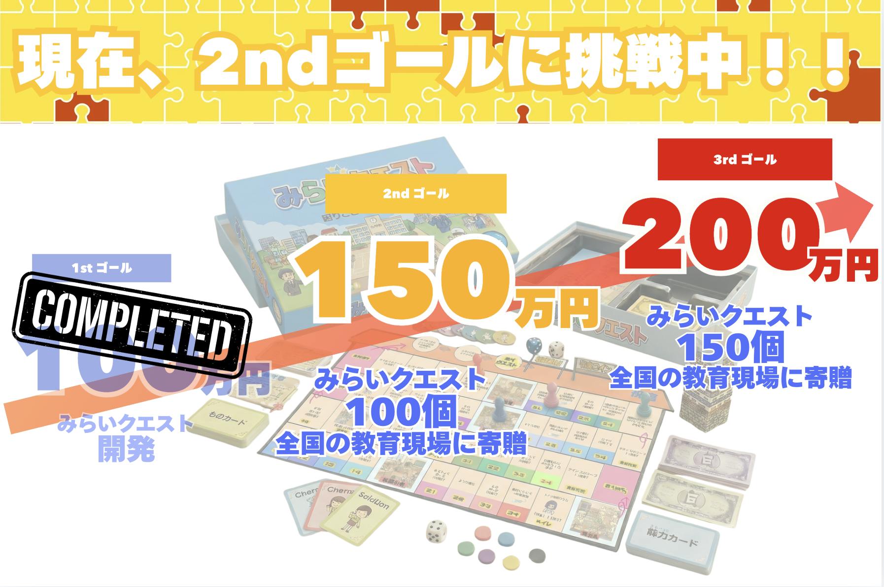 2ndゴール150万円達成で『みらいクエスト』100個、3rdゴール200万円達成で『みらクエスト』150個を全国の教育現場に寄贈することを決定いたしました!