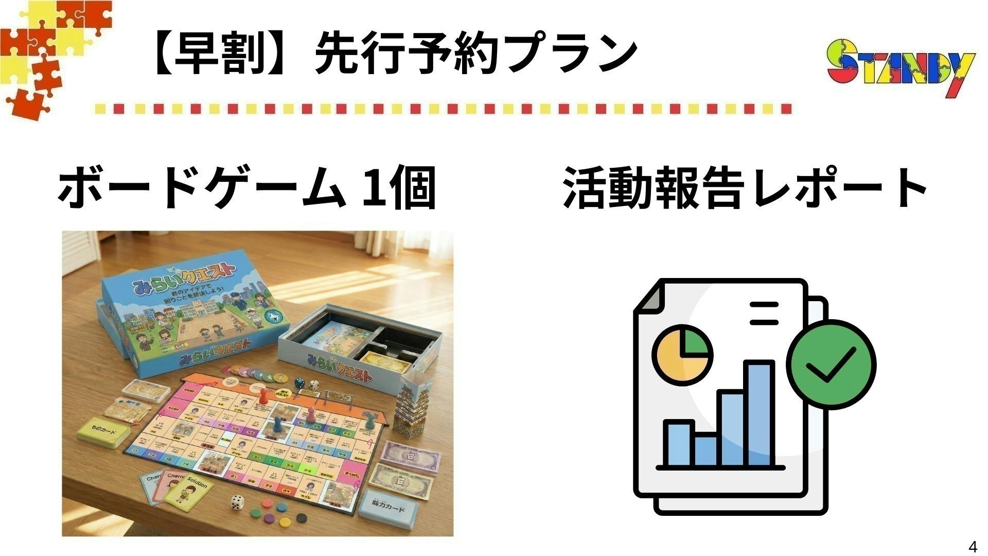 ■ 製品提供:完成したボードゲーム『みらいクエスト』を3個お届けします。