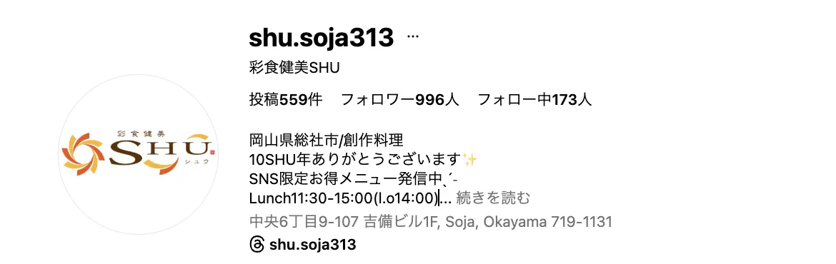岡山県総社市の飲食店『彩食健美SHU』です!