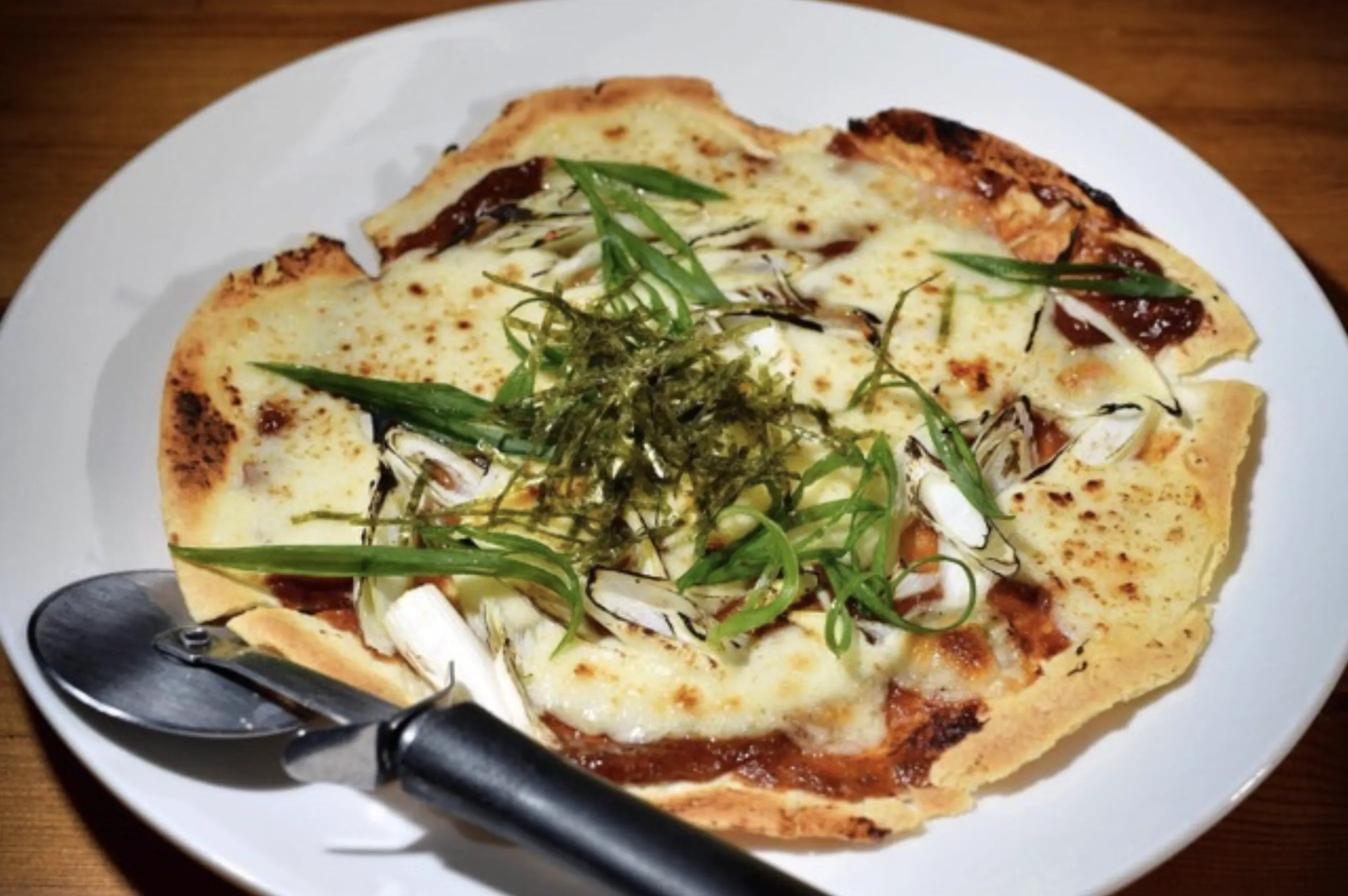 ①自家製鯛味噌と九条葱のピッツア