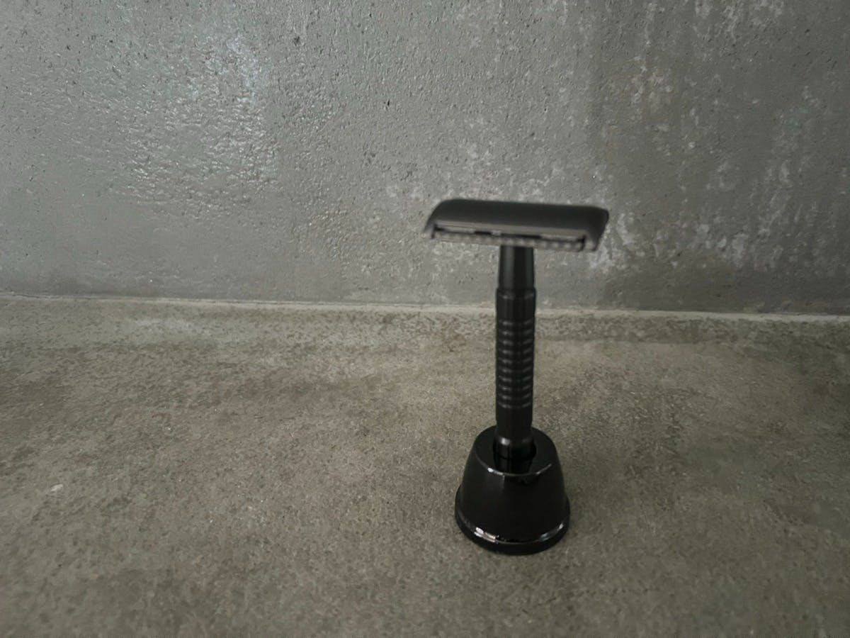 クラシックなT字剃刀のフォルムをベースに、現代の暮らしに馴染むスマートな質感とカラーリングを融合。金属の重厚感とミニマルなラインが、“道具”でありながら“インテリア”としても映えるデザインです。