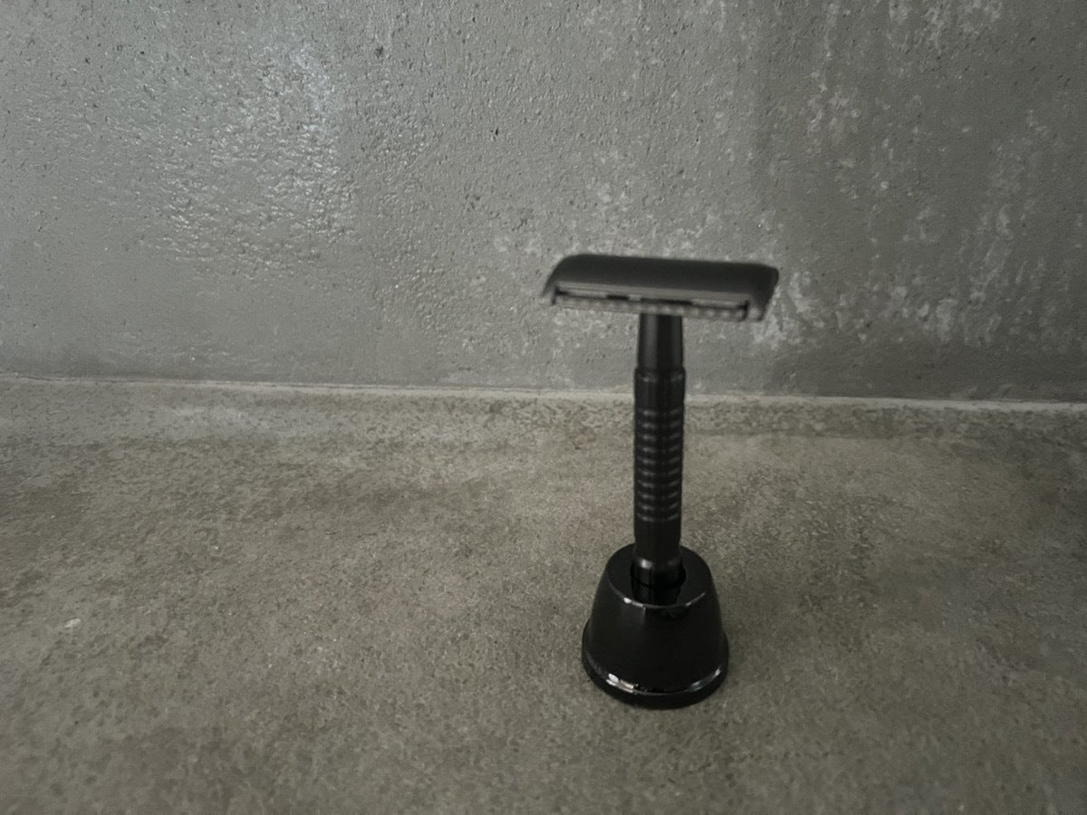 クラシックなT字剃刀のフォルムをベースに、現代の暮らしに馴染むスマートな質感とカラーリングを融合。金属の重厚感とミニマルなラインが、“道具”でありながら“インテリア”としても映えるデザインです。