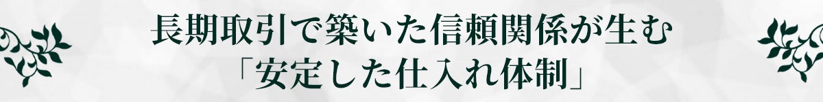 これまで築き上げてきた良好なパートナーシップは現在も継続しており、安定した仕入れ体制を確立しています。