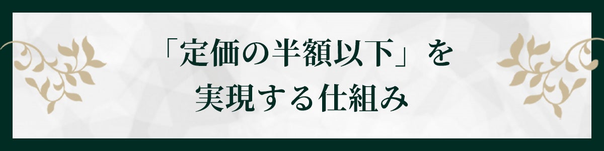 この2つの要素により「定価の半額以下」という価格を実現します。