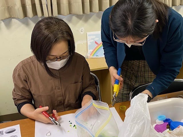 活動中のようす(プラごみの仕分け、裁断、加工)
